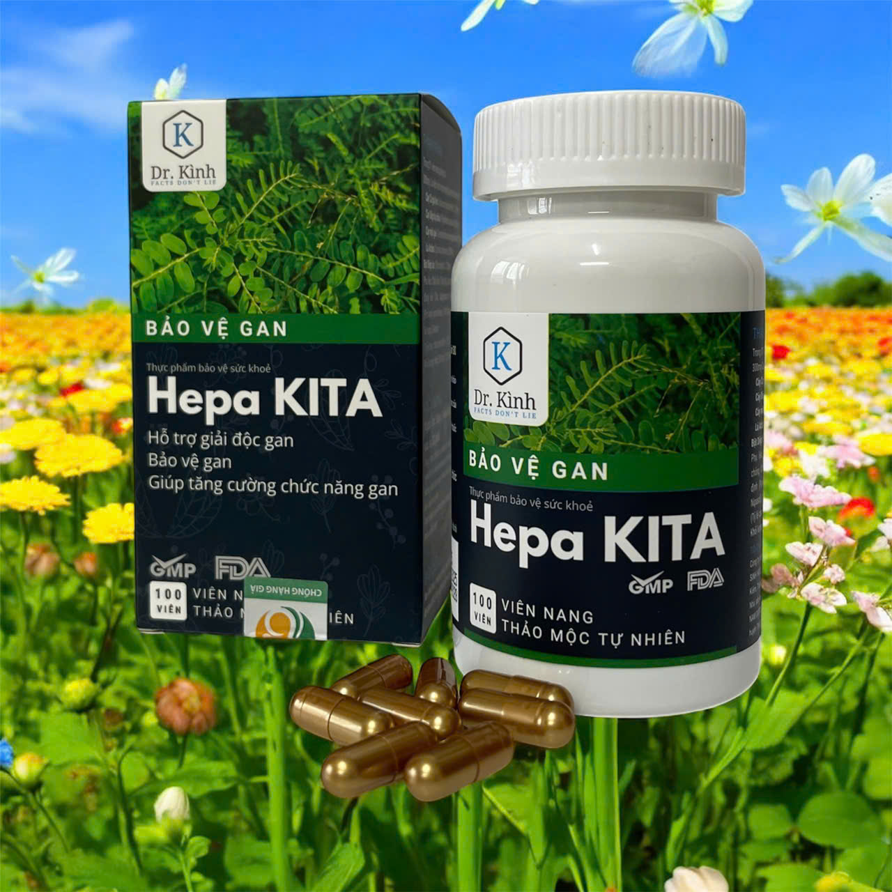 Hepa KITA là thực phẩm bảo vệ sức khỏe do Công ty Cổ phần Nghiên cứu và Ứng dụng Công nghệ Sinh học Y dược Dr. Kinh phát triển, dựa trên công thức độc quyền KITA NATURE. Sản phẩm được sản xuất tại Nhà máy công nghệ cao Đông Nam Dược Bất Phúc, đạt chuẩn GMP và có xác nhận tiêu chuẩn của FDA. ⸻